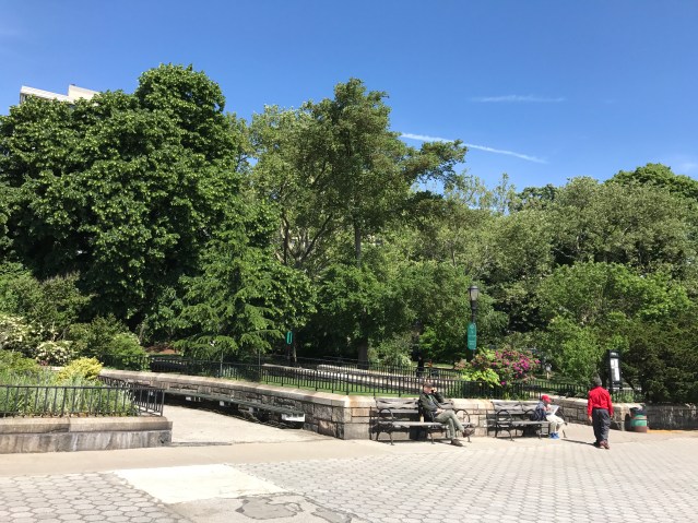 The word “escape” makes me think of an exit. Usually an exit from a small enclosure onto a wide open environment. But I wonder if the more common practice isn’t to enter something, like a secluded zone, in order to “escape” from large and chaotic spaces. Like when we escape from life into VR programs, movies, books, and fantasies in our head. Carl Schurz Park offers a little of both kinds of escape. With its sculpted gardens and wide sloping steps and mounds, it feels serene and intimate despite its proximity to public power (Gracie Mansion, where the mayor of New York lives, is adjacent to it) and it’s remarkably quiet, despite flanking the noisy whirlpool of a city of eight million people. A shaded sanctuary that’s also very much the Great Outdoors. A large park, where New Yorkers escape their tiny apartments. Children and dogs run free. A long promenade — the East River Greenway — runs along one side, beyond which stretches the East River, a tidal estuary of an expansive bay of the Atlantic Ocean.