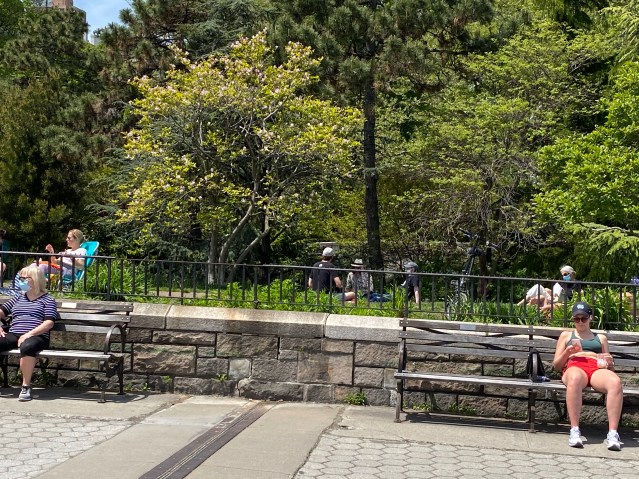 And of course, just about everyone is wearing a mask… though some people seem to have it on as a nod to social expectation only, wearing it more around the chin than over the mouth and nose. I can’t really blame them. They are probably on their ONLY outdoor hour of the day (or week) and have been burrowing in an apartment since March. How could they NOT long to draw a genuinely unobstructed breath of fresh air?