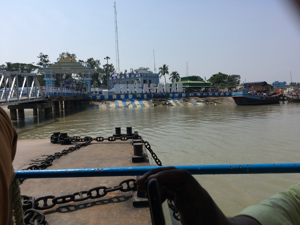Currently boats, ferries, launches and vessels are the only options for islanders and visitors to commute to and from Sagardwip and the other islands in the vicinity. It takes thirty minutes to travel across the Muriganga river which stretches from Kakdwip to Sagardwip for four kilometres. Sagardwip is the largest island with a population of nearly two hundred thousand, spread over forty-three villages. As pointed out earlier, it has only one port, which is situated at a locality called Kochuberia, in the northeastern bank of the island. Ganga Sagar, the site of the pilgrimage (where the Ganges flows into the Bay of Bengal) is situated in the extreme south, thirty kilometres from Kochuberia. A temple dedicated to the sage Kapil Muni, who is said to have meditated in this spot centuries ago, has stood here for hundreds of years. However, the original temple is said to have disappeared into the encroaching sea and the current one is believed to be the third reconstruction.