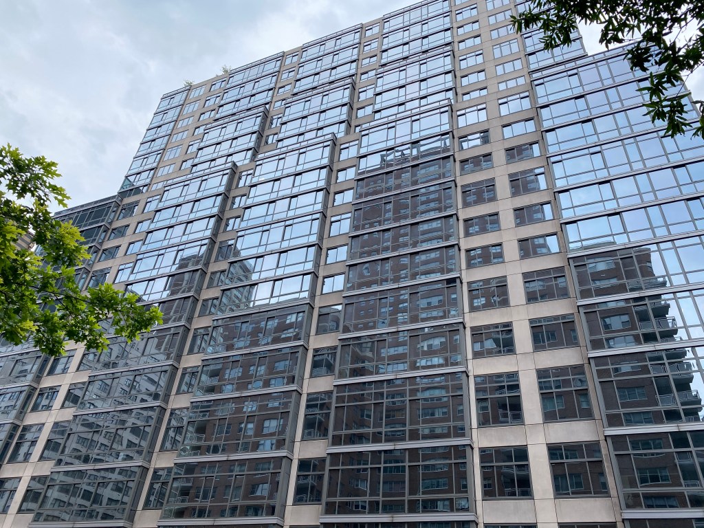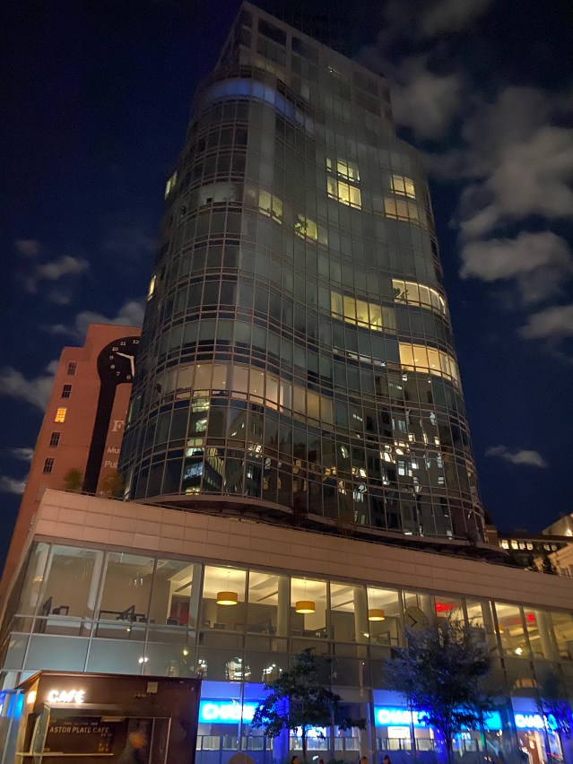 This video, taken while hurrying across town to a meeting (hence the shaky-cam quality), shows a whole chunk of the cityscape… and the sun itself, recreated on the glass side of a building.
