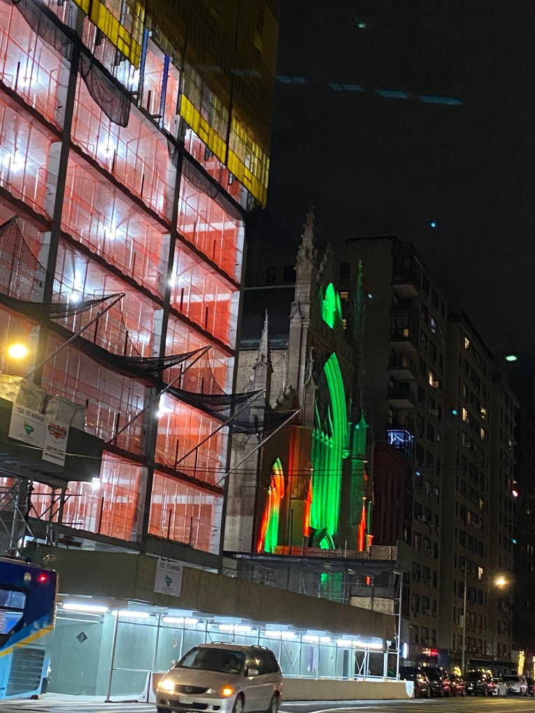 Left behind, but not alone. A reflected companion stares back at this rejected apple on a subway seat.Self reflection on squalid subway glass, framed by quotidian station info. Trying to capture the contact info of a handyman service, the photographer is captured, twice (in the door and in the mirror), and at two entirely different scales! A giant and a midget in one.The nearly silhouetted form of a building can be seen on the side a glass-walled building.Buildings reflecting each other in vivid color.A portrait of the whole block—and even a whole miniature skyline—on one wall.Buildings reflecting buildings.Construction and chaos, reflected back by the finished portion of this in-progress structure.Building under construction with orange scaffolding, illuminated by reflected light. The partially obscured adjacent building is a church, lighted red and green for Christmas.White light reflecting on metal scaffolding on street level and on pink and yellow scaffolding on a building under renovation.Scaffolding always seems more colorful than the intentionally built permanent structures. Is this an apt metaphor for life?Water reflecting bridge, shore, and lights.Water reflecting toy boats, tiny buoys, tree branches, and tall buildings.